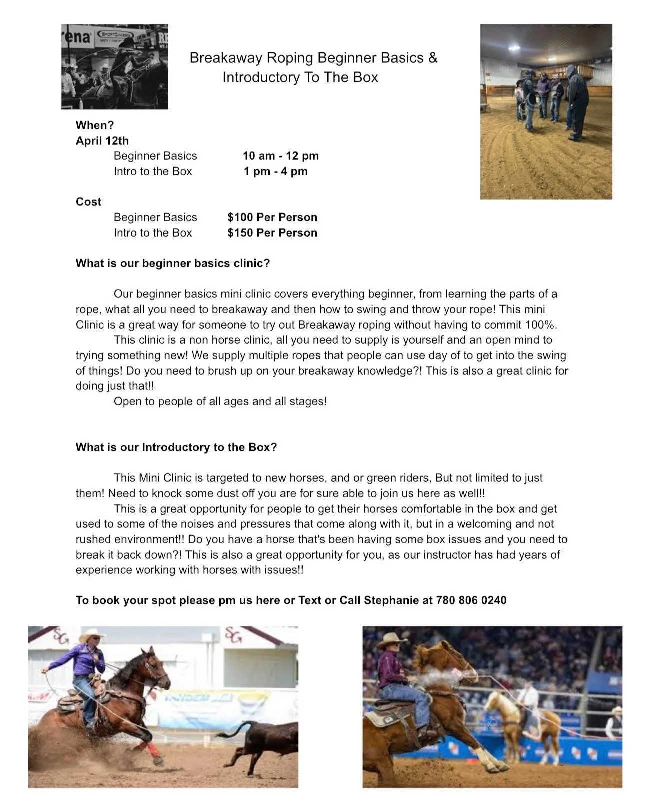 Double H Arena Breakaway Roping Beginner Basics & Intro to the Box Clinic with Danie Rairdan April 12th.