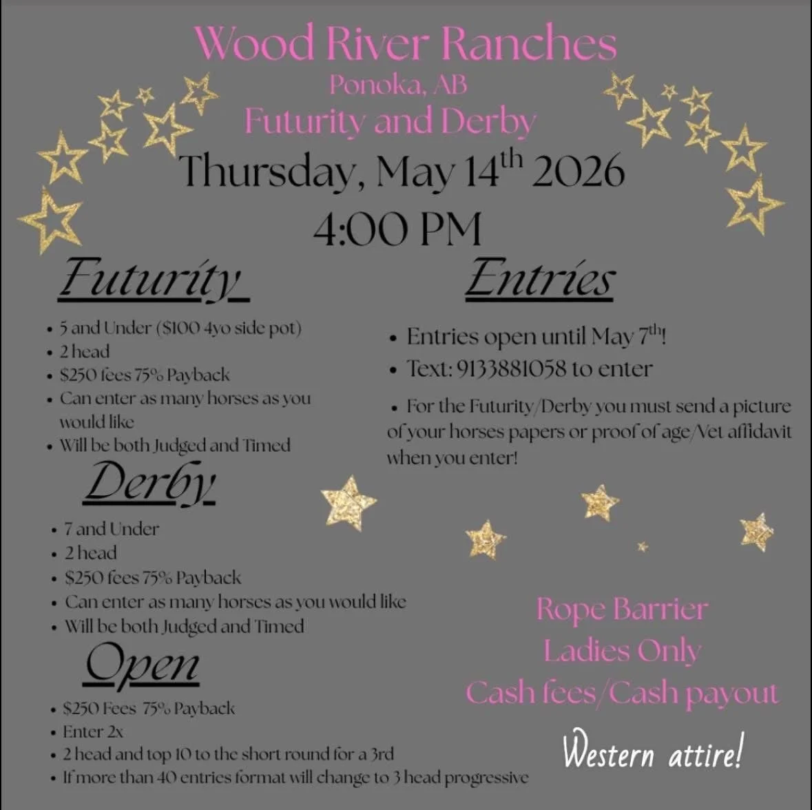 Wood River Ranches Futurity & Derby - Thursday May 14 4:00PM, Ponoka AB